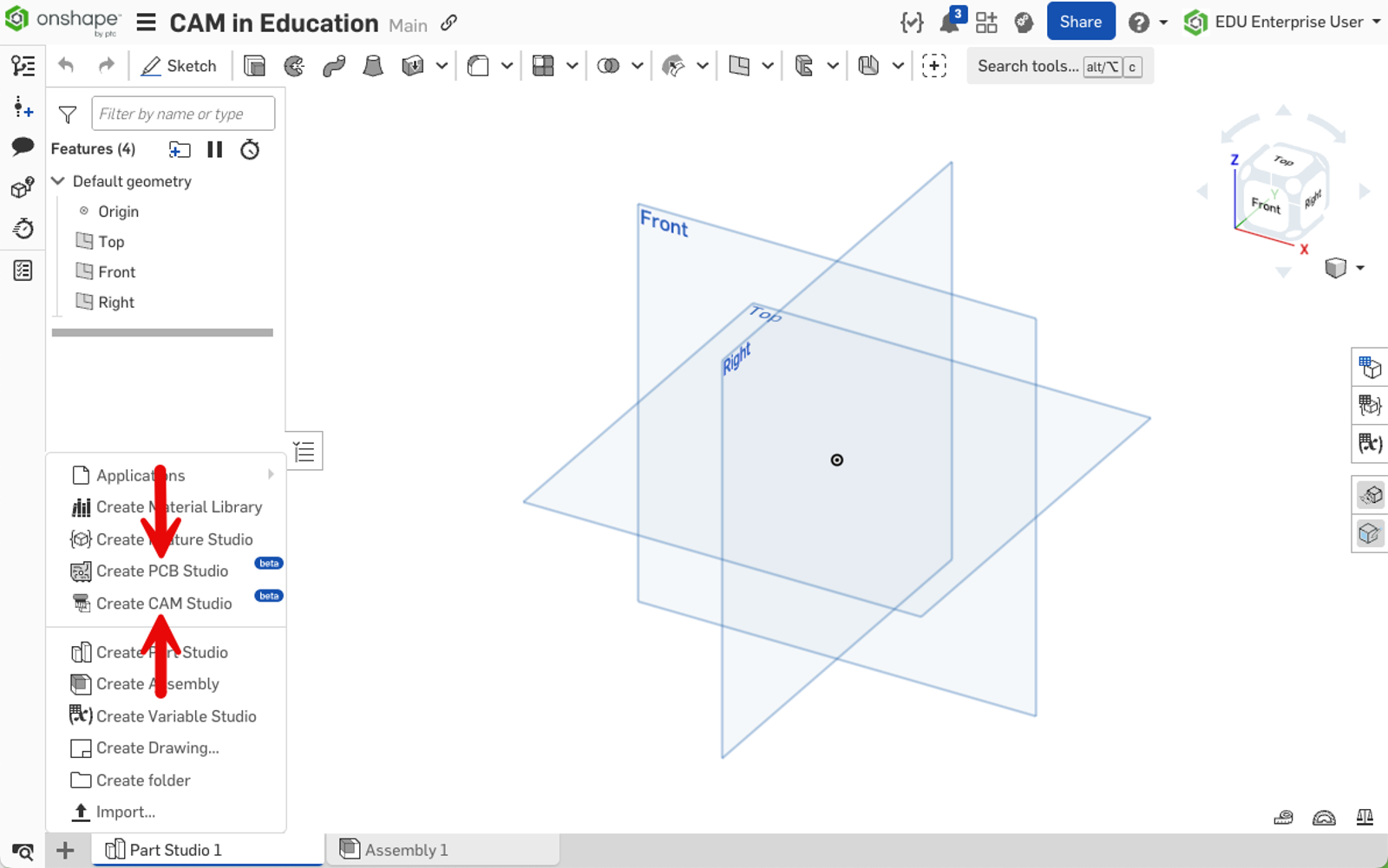 Onshape Education Enterprise users now have access to PCB Studio and CAM Studio. For more information, see the Education Community category in the forums.